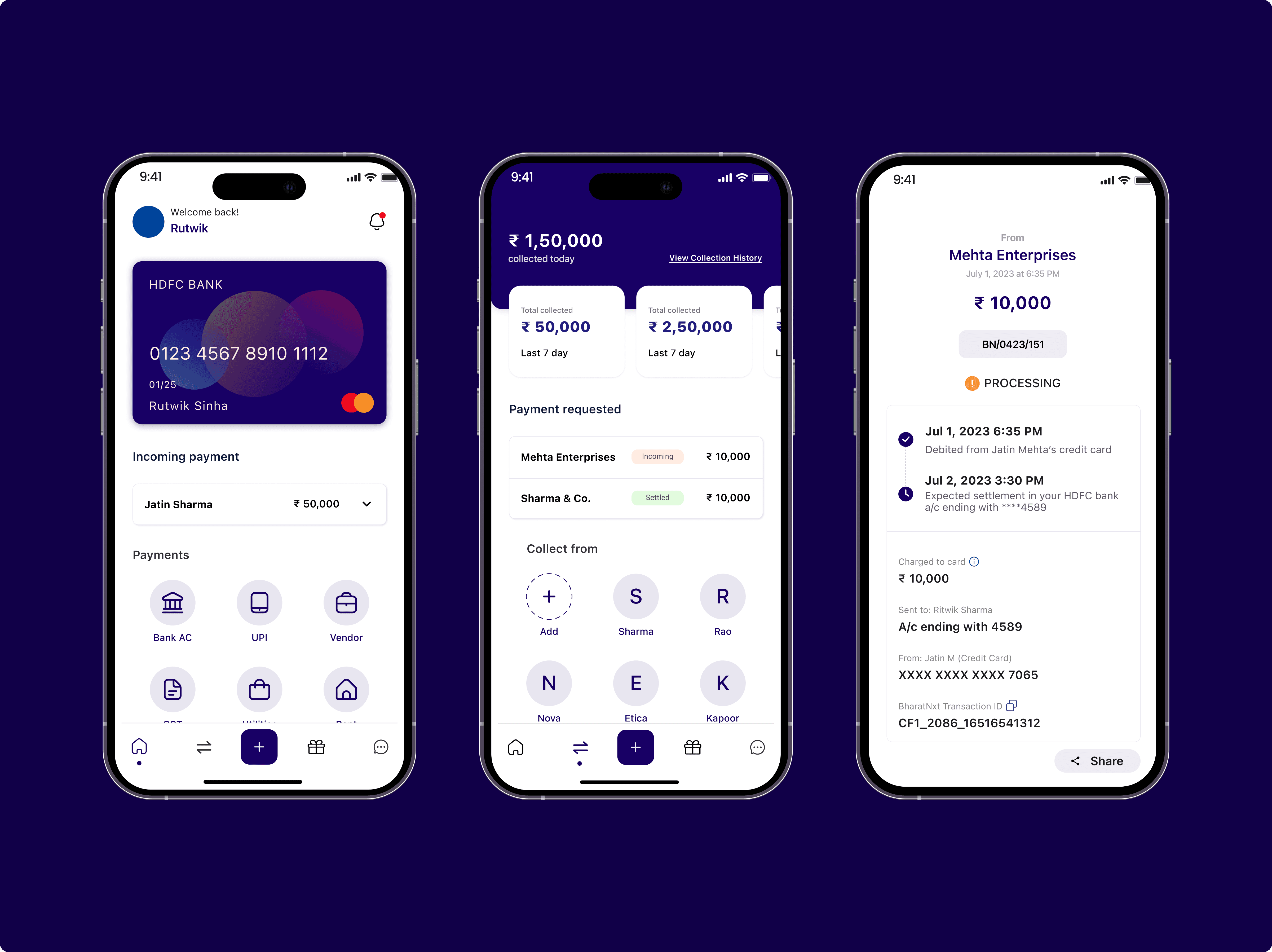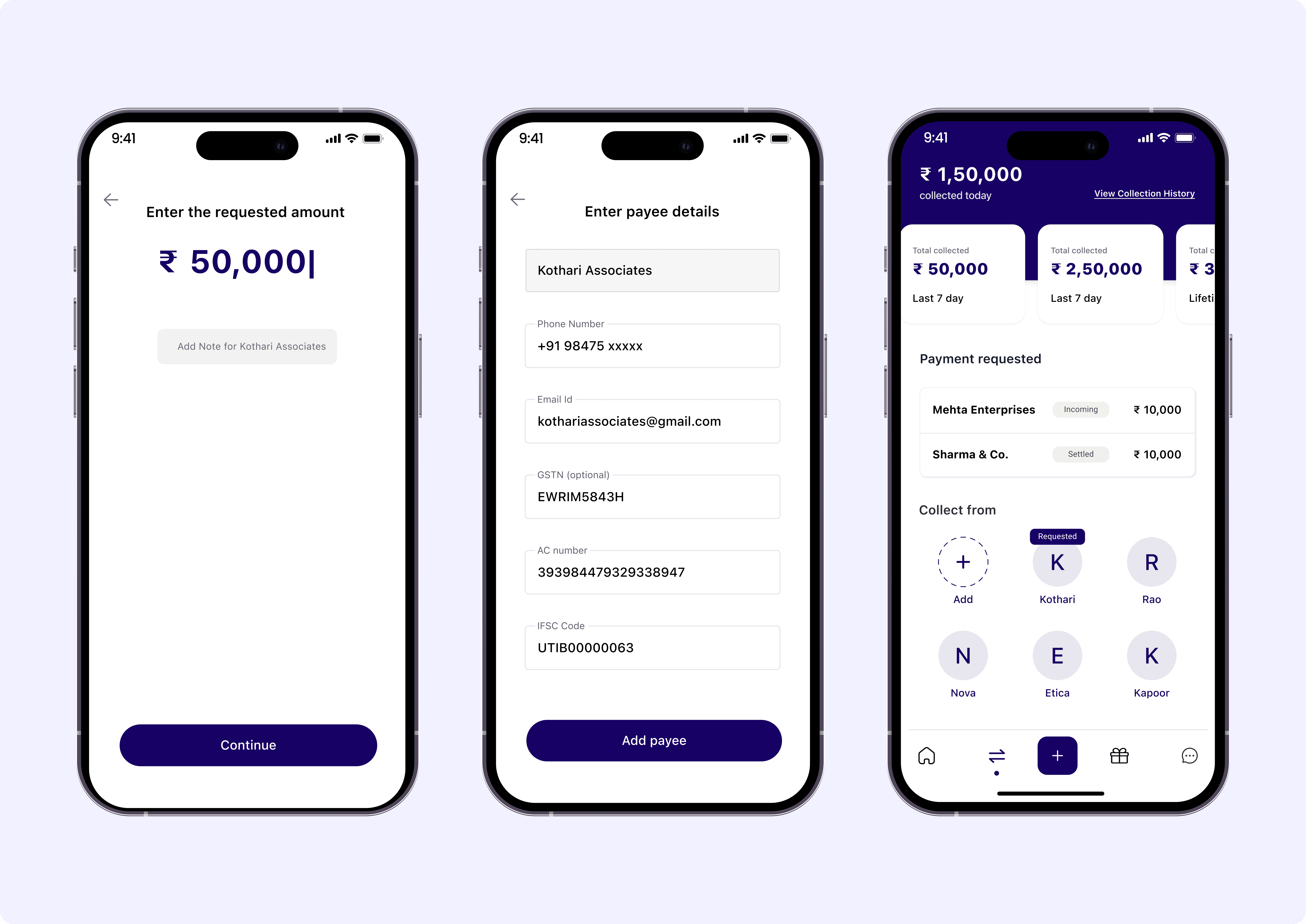 BharatNXT is a B2B payments platform enabling businesses to send, receive, and track transactions. This case study focuses on the design of a bi-directional payment tracking and collections feature that supported payers, payees, users, and non-users while driving transparency, activation, and repeat engagement.