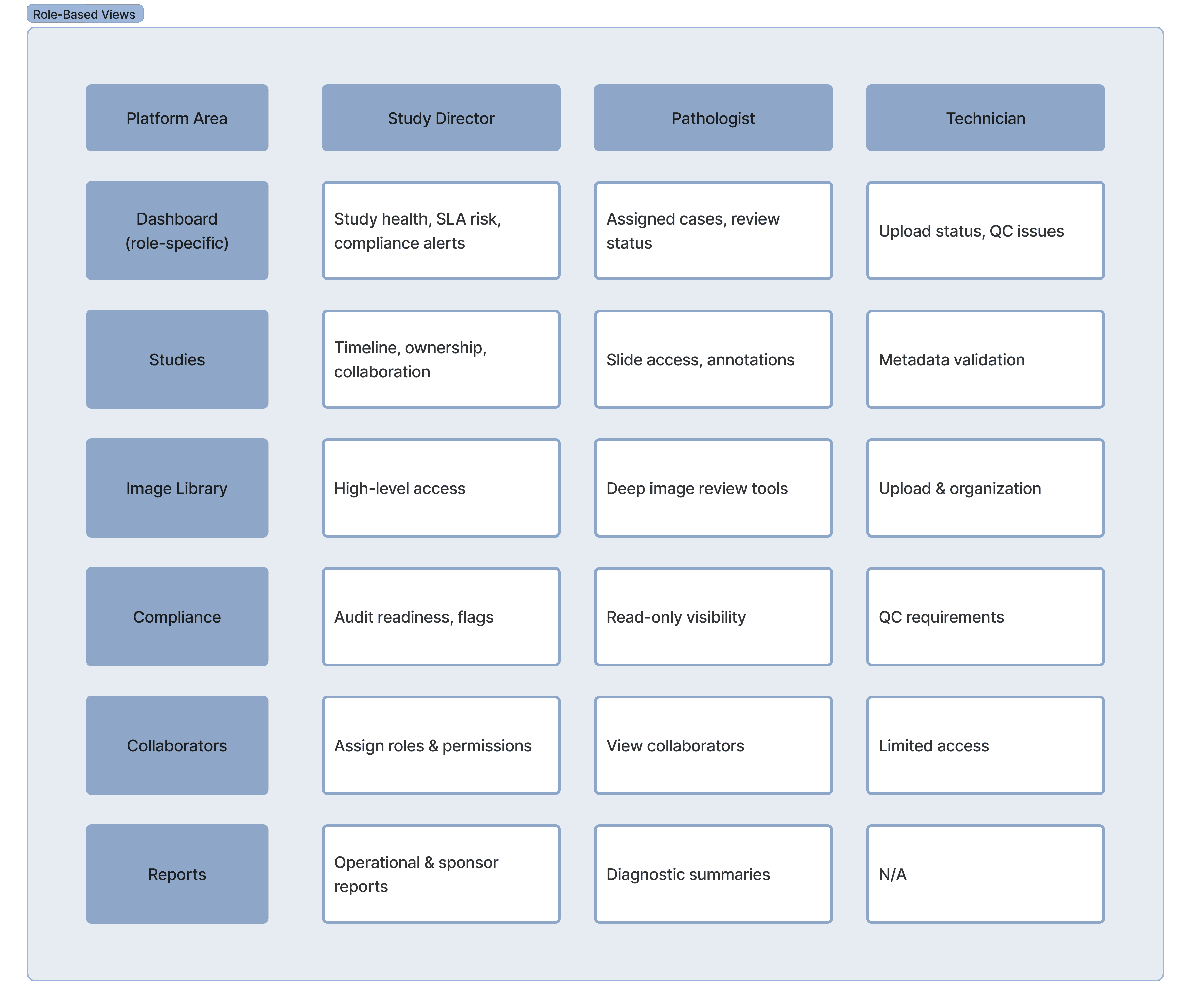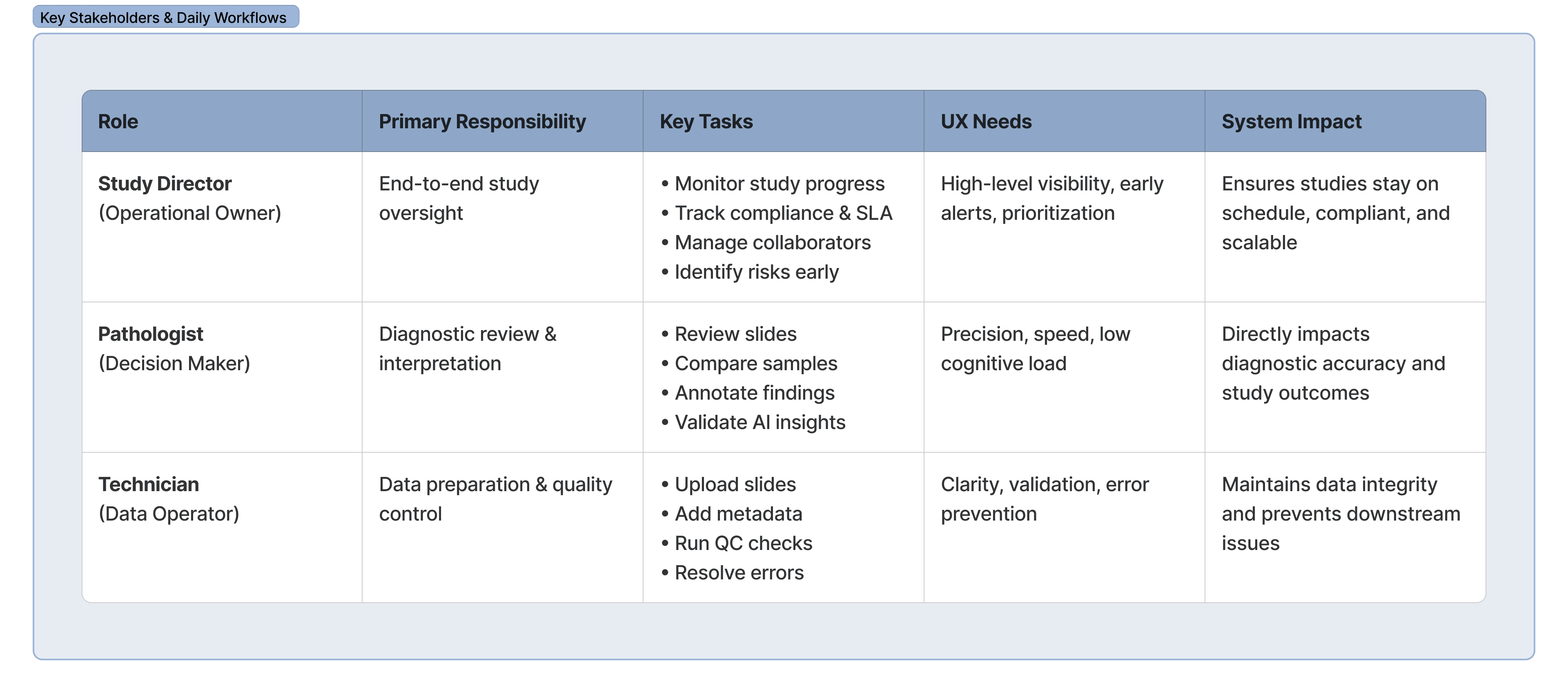 Designed role-based experiences for Study Directors, Pathologists, and Technicians