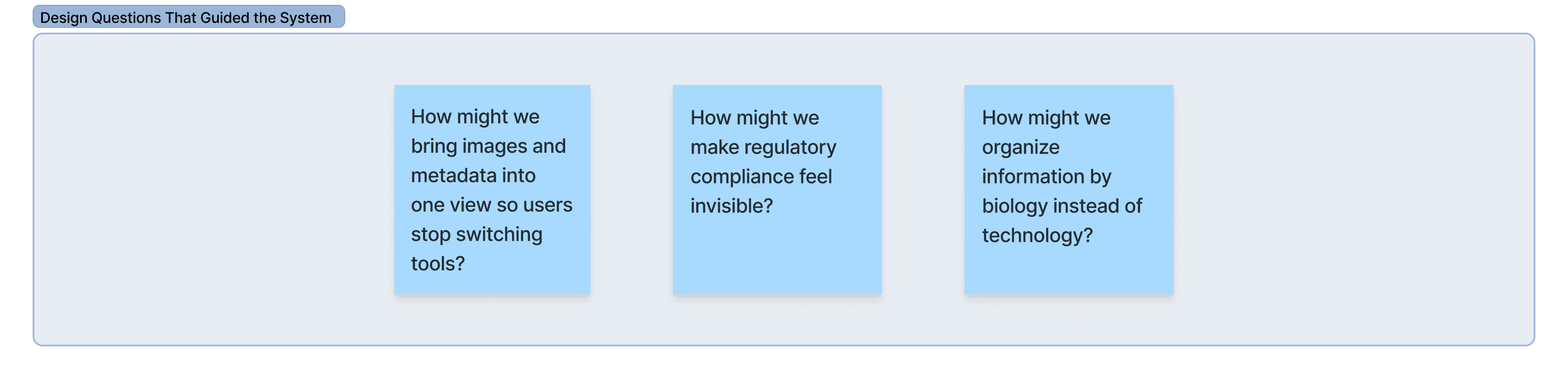 Images, metadata, annotations, and decisions lived in different places, forcing users to mentally stitch information together.